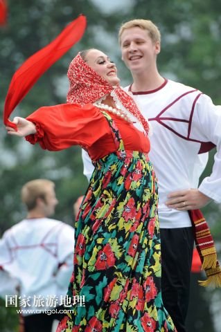 9月17日,俄羅斯彼特尼茨基國(guó)家模范藝術(shù)團(tuán)成員在現(xiàn)場(chǎng)表演。