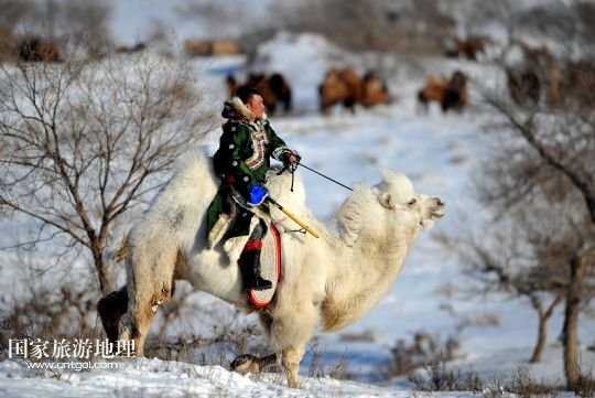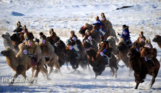 國家旅游地理 內(nèi)蒙古錫林郭勒1月5日訊 1月5日,牧民們?cè)?0公里駱駝速度賽比賽中。當(dāng)日,內(nèi)蒙古烏珠穆沁駱駝文化節(jié)在西烏珠穆沁旗烏蘭哈拉嘎蘇木舉行。來自呼倫貝爾、鄂爾多斯以及蘇尼特和烏珠穆沁草原的牧民帶著200多峰駱駝在白雪皚皚的草原上進(jìn)行駱駝選美、10公里駱駝速度賽等以比賽活動(dòng)和民俗風(fēng)情表演,展示內(nèi)蒙古草原上獨(dú)特的駱駝文化。 /新華社記者 任軍川 攝