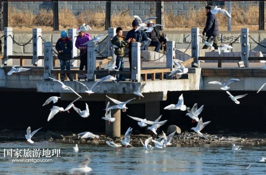 國家旅游地理 河北秦皇島1月13日訊 1月12日,一群海鷗在秦皇島市海港區(qū)新開河入??谔幰捠场kS著氣溫不斷下降,在秦皇島沿海一線越冬的海鷗開始飛到市區(qū)內(nèi)的河道覓食,為冬日里的秦皇島市區(qū)增添了生機(jī)。 /新華社記者楊世堯攝