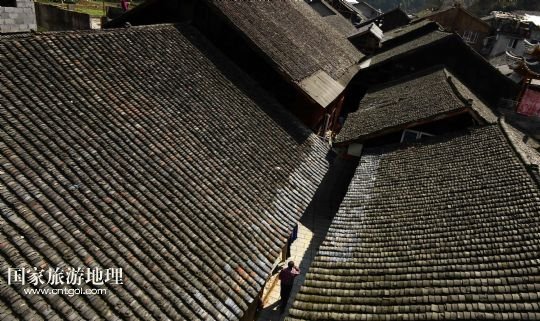 用布瓦覆蓋的慶陽古街吊腳樓錯(cuò)落有致(3月27日攝)。