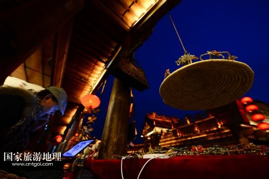 國家旅游地理 山東棗莊4月22日訊 這是夜色下的臺(tái)兒莊古城復(fù)興樓(4月8日攝)。1938年春的臺(tái)兒莊大戰(zhàn),是抗日戰(zhàn)爭(zhēng)爆發(fā)后中國軍隊(duì)在正面戰(zhàn)場(chǎng)取得的一次重大勝利。臺(tái)兒莊是世界著名的二戰(zhàn)紀(jì)念城市,有著2000多年歷史的臺(tái)兒莊古城完好地保存著53處戰(zhàn)爭(zhēng)遺跡。