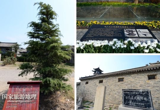 位于臺(tái)兒莊古城的臺(tái)兒莊大戰(zhàn)指揮所(左上)、民居(左下)和清真寺內(nèi)柏樹(右)上,仍保存著當(dāng)年臺(tái)兒莊大戰(zhàn)中留下來的彈孔(拼版照片,4月8日攝)。