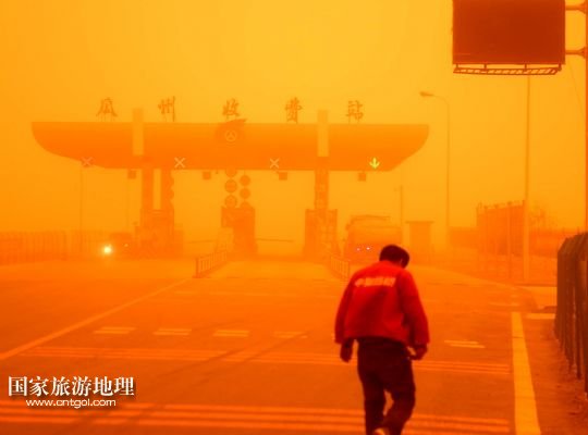 國家旅游地理 甘肅酒泉4月23日訊 4月23日,一輛拉載公路施工人員的三輪車在沙塵暴中行駛在酒泉市瓜州縣城郊的公路上。當(dāng)日,甘肅省酒泉市的敦煌市、瓜州縣等地遭受特強(qiáng)沙塵暴襲擊,最小能見度不足20米。當(dāng)日下午,酒泉市氣象臺發(fā)布沙塵暴紅色預(yù)警信號。 /新華社記者 聶建江 攝