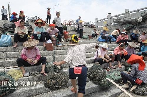 摘要:沿著青石板路,走進福建泉州豐澤區(qū)東海街道蟳埔社區(qū),兩邊錯落分布著古老的蠔殼厝,幾位頭戴鮮艷簪花、穿著對襟大衣的阿婆聚在一起利落地剝著海蠣;不遠處的集市上,幾位賣海鮮的阿婆在和顧客討價還價;十幾位婦女登上漁船,即將出海去就近的灘涂挖牡蠣……蟳