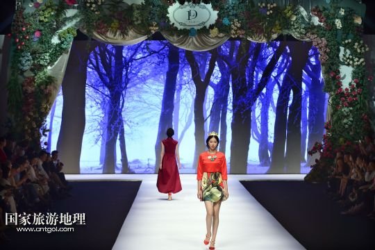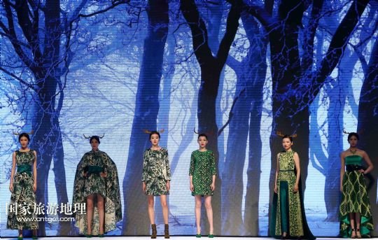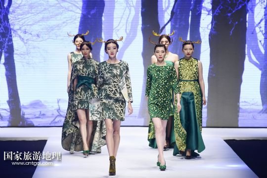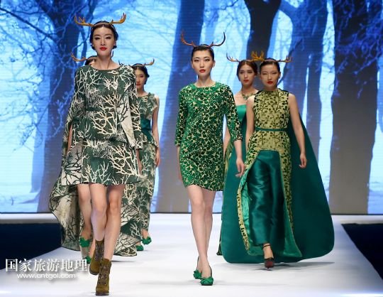 5月9日,模特在“2015杭州國際時(shí)尚周”開幕式上展示英國寶萊達(dá)服裝設(shè)計(jì)公司主題為“樹靈派對”的時(shí)裝。