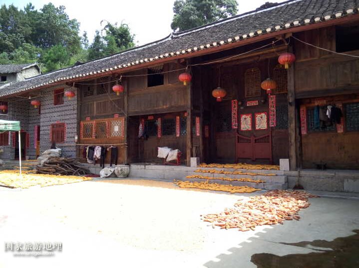 國家旅游地理 貴州黔南8月28日訊 (記者 萬棋民 攝影報(bào)道) 上圖是在黔南貴定縣的音寨,音寨是天下布依第一寨。音寨的民居依山而建,一層一層往山上延伸。從圖中可以看到,音寨民居一半是木制結(jié)構(gòu),另一半新建的則是磚石材質(zhì)。這種新與舊的連接是兩個(gè)時(shí)代的接軌,反映了改革開放前與改革開放后隨著經(jīng)濟(jì)的發(fā)展,少數(shù)民族居民的居住環(huán)境和生活水平得到了極大的提升。在圖片右邊的木制房子大門的正上方,刻著三塊密密麻麻的字,上面刻的是毛澤東語錄,而且不只這一家的木制房子上刻有毛澤主席語錄,可以看出當(dāng)?shù)鼐用駥γ飨木磹壑椤?br />