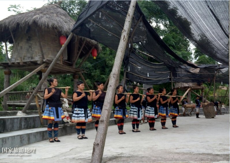這是黔南荔波縣瑤寨姑娘在表演舞蹈。荔波瑤山白褲瑤是一個(gè)歷史悠久的古老民族,是一支長期深居高山密林,過著刀耕火種,自給自足的封閉式狩獵民族,至今仍保存著母系氏族社會向父系氏族社會過渡的遠(yuǎn)古遺風(fēng),因其民族文化保存最完整而被聯(lián)合國科教文衛(wèi)組織賜予“人類文明的活化石”之稱。又因其崇拜太陽神,信奉百神靈,圖騰與遠(yuǎn)在大洋彼岸的印第安人極為相似而被外界稱為“東方印第安人”。
