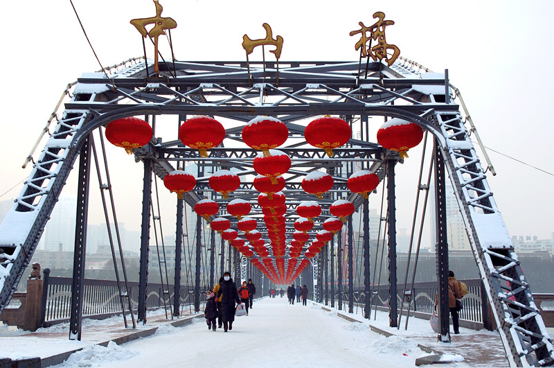 圖為蘭州中山橋和白塔山景點(diǎn)